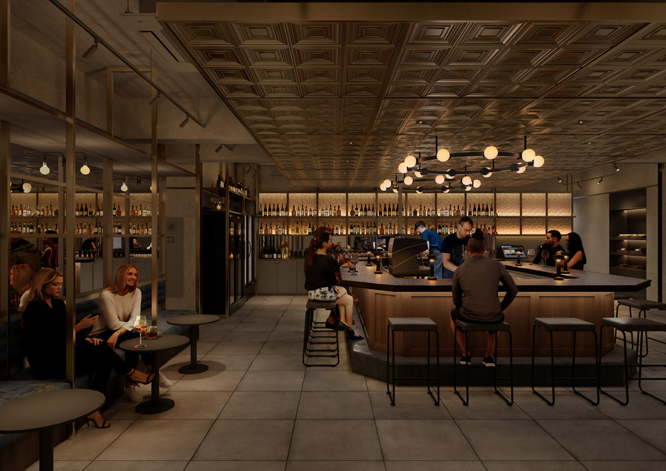 「プラザホテル天神」を全面改修し、これまでのホテルにレストランを併設ではなく“レストランを主役”に据えて、そのにぎわいを包み込むようにホテル機能を組み込んだことが特徴という。また、ホテルとレストランのボーダレス性を象徴する取り組みの一つとして、バーカウンターにホテルのレセプション機能を持たせている。
