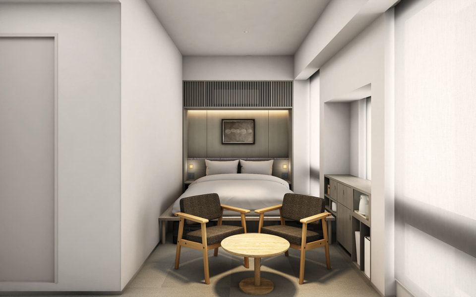 The new hotel is a renovation of the former Amenity Hotel Kyoto. While preserving the original exterior, which has long been a part of the neighborhood's scenery, the 18 guest rooms are furnished primarily with MUJI's signature furniture and decor. The interiors also incorporate artworks by local Kyoto artists and craftsmen.