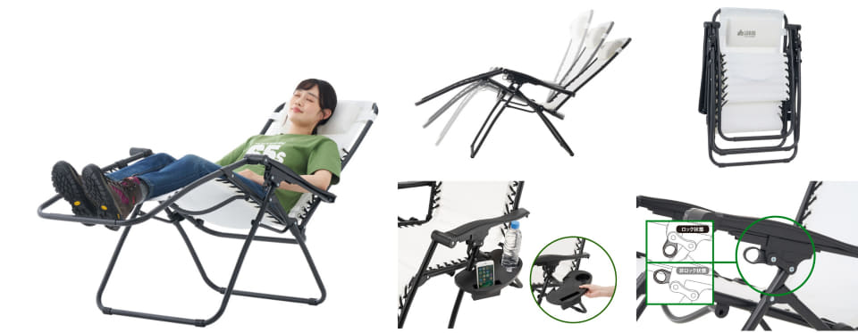 ロゴス、水や汚れに強いテスリンメッシュ素材のチェア&キャリーカート。キャンプ場で映えるホワイトカラー
