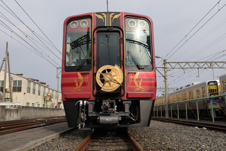 南海電鉄は2月16日、千代田工場において新たな観光列車「GRAN天空」の外観を報道公開した。
