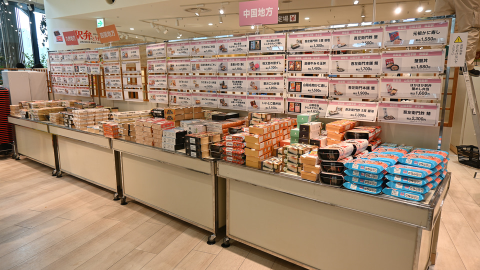2月16日から1週間にわたって開催されている、阪神百貨店の駅弁大会「阪神の有名駅弁とうまいもんまつり」の最大の特徴は、その場で駅弁を食べられるイートスタンド(イートインスペース)があること。京王百貨店・新宿店などでも同様の駅弁大会があるものの、ここまで広いスペースが催事場にあるのは、きわめてめずらしい。