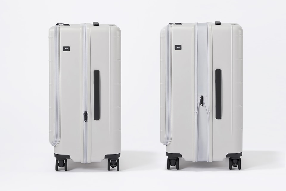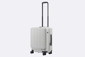 前面はメイン収納にアクセスできるフロントオープン仕様を採用。機内持込サイズは立てたまま出し入れできる縦開きで、預け入れサイズは省スペースで開閉できる横開きになっている。
