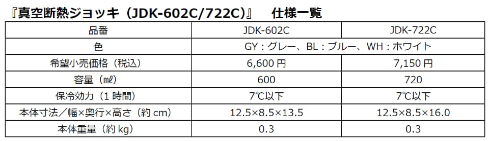 サーモスは、「真空断熱ジョッキ(JDK-602C/722C)」を2月21日に発売する。