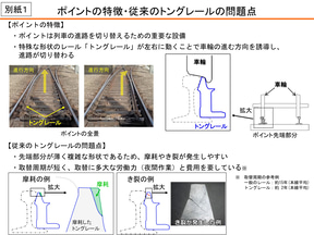 JR東海は、東海道新幹線の「トングレール」に新形状を開発、1月から本線で試験を開始している。今後、効果を確認して全線への導入を進めるという。