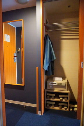 館内着(浴衣)は、客室にあるデザイン違いのMサイズ2着のほか、S/Lサイズや子供用など追加分はロビーで自由に選べる。足袋タイプの靴下もセットで備え付けられており、足のサイズが25.5cmの記者は問題なく着用することができた。なお大浴場だけでなく、レストランや隣接する日帰り温泉館なども、館内着とスリッパを着用したままで利用可能。