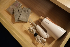 ドライヤーは壁と一体になっているタイプと、部屋の引き出しにパナソニックのナノケアがあった。