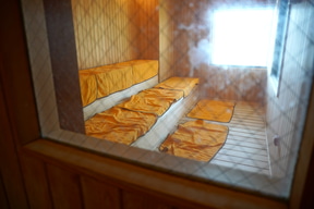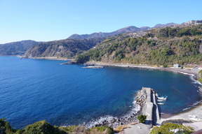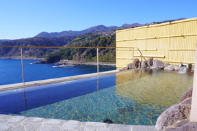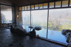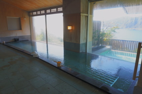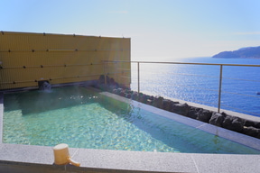 大浴場は本館3階にあり、54℃の源泉から湧き出る天然温泉(津島温泉、循環式)の内風呂と露天風呂、サウナを備えている。利用時間は5時~11時、15時~25時で男女入れ替え制。露天風呂からは、日中は相模灘と伊豆半島の海岸線、夜は満天の星空を眺められる。
