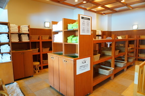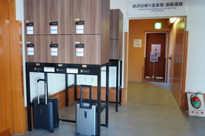 ロビー売店では地元の銘菓や地域限定の食品・雑貨などを販売している。営業時間は8時~22時。日帰り温泉館の連絡通路そばには、荷物やスーツケースを預けられるロッカースペースもあるので、チェックアウト後も手ぶらでのんびり各施設を満喫しよう。
