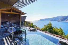 屋上には貸切露天風呂。プライベート空間で絶景を満喫