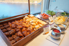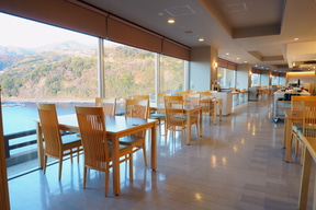 朝食も、夕食と同じく本館4階レストラン「綺羅(きら)」で提供。海を眺めながら、和洋さまざまな料理をバイキング形式で味わえる。
