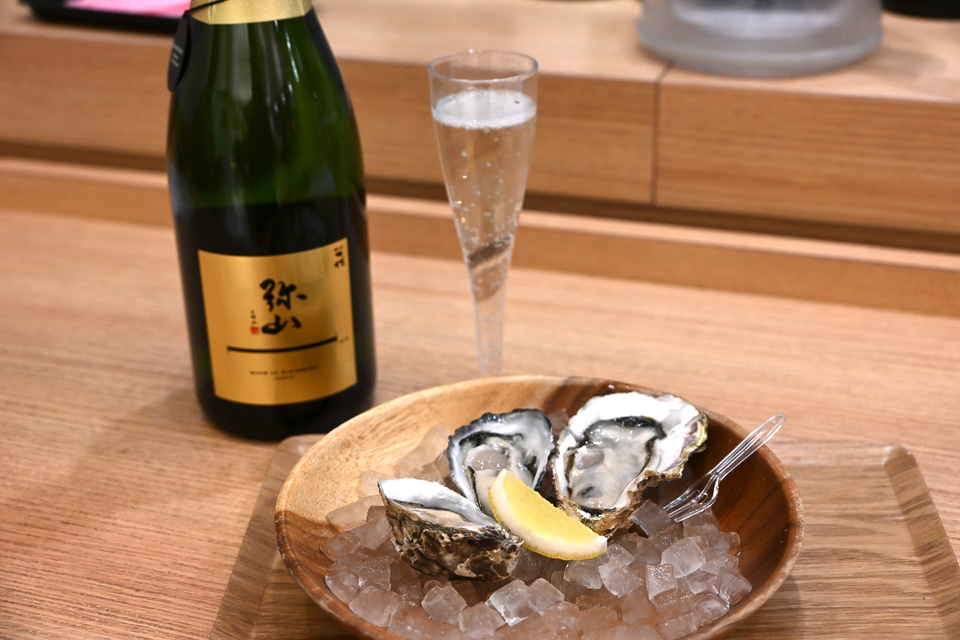 「やっぱりスパークリングでしょう!」というアドバイスをいただき弥山をチョイス。キリッとした味わいにマスカットのようなフルーティさが広がり、生かきの美味しさを引き立てる1杯だった。日本酒のほかワインなども用意。なお、取材中は花金ということもあり、多くの会社帰りのビジネスマンらが来店していた。