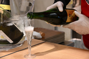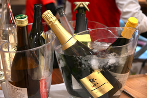 日本酒をあわせて楽しむのも大アリ! イベントに合わせ、かきにぴったりのご当地地酒も多数用意しているので、スタッフに聞いてみるのがベストなペアリングを見つけるための近道。この日は、賀茂鶴 吟醸 辛口(1杯600円)と 弥山 純米スパークリング 辛口(1杯650円)をお勧めしてくれた。