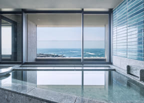 「ふふ」ブランド10施設目で、初の海を望むリゾート。三浦半島の最南端エリアに立地し、客室からは目の前に広がるオーシャンビューを楽しめる。7タイプ計34室(広さは58~140m2)あり、すべての客室に海を望む天然温泉を完備する。