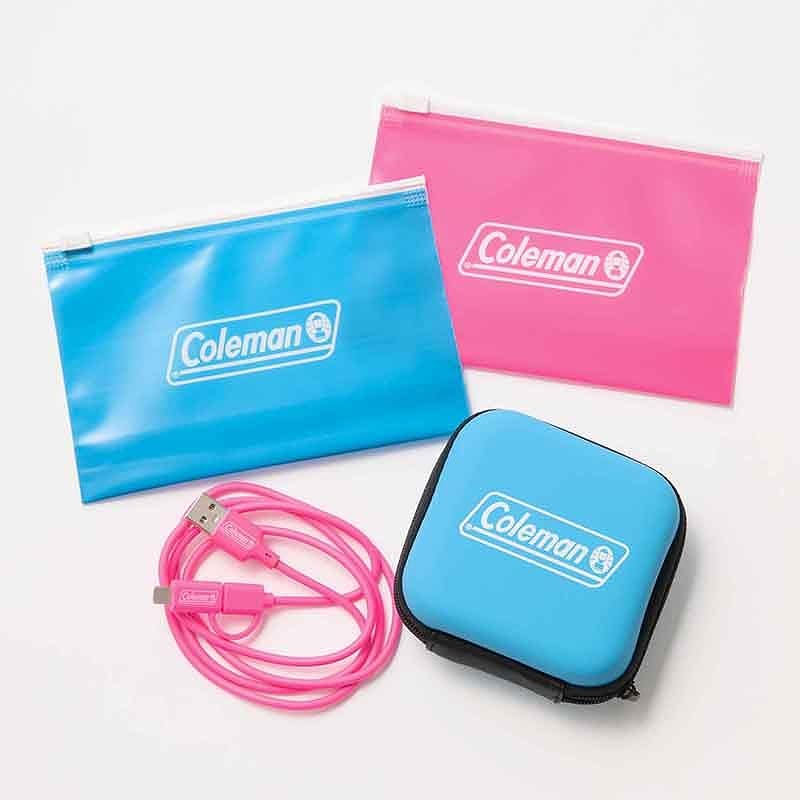 特別号の付録は、アウトドアブランド「Coleman(コールマン)」のあると便利な4点セット。ガジェットケース、2in1タイプのUSBケーブル、ジッパーバッグ2枚が同梱される。ビビッドなピンクとブルーのカラーリングが春夏のお出かけコーデにも映える。