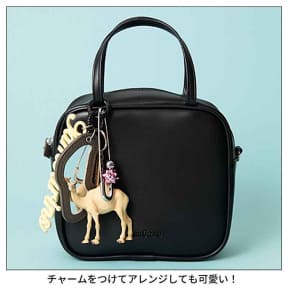 サイズは約18×8×16cm(幅×奥行×高さ)で、肩掛けスタイルも楽しめるショルダーストラップ付き。オンオフ問わずあらゆるコーデに合わせやすく、チャームをつけてアレンジするのもお勧めという。