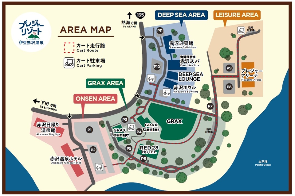 2024年12月からカトープレジャーグループが運営する「伊豆赤沢温泉郷」。かつてDHCが運営していた「赤沢温泉ホテル」をはじめ、多くの周辺施設が2025年秋~2026年春にかけて段階的にリニューアルし、今春からは「プレジャーリゾート 伊豆赤沢温泉」として一体的な体験を提供するという。