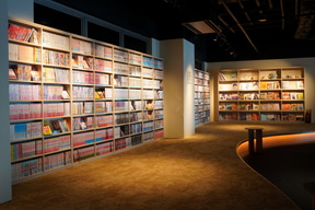 2階「海のねころびラウンジ」は、海と森をイメージしたくつろぎスペース。約6000冊のマンガや雑誌、YouTubeや動画配信サービスを利用できるタブレット端末を用意している。