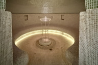 地下1階と2階は、宿泊者または全館利用者限定のエリア。地下1階には、じんわりと暖かい空間で無理なく汗をかいてリフレッシュできる「温暖浴室」と「プレイラウンジ」が設けられている。ラウンジではクールダウンはもちろん、一部の座席にはコンセントが設けられており、スマホやPCの充電も可能。
