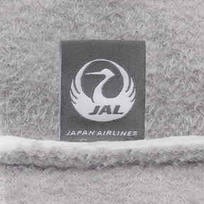スムーズィー生地のボーダー柄パーカと着圧ソックスは、なめらかな肌ざわりが特徴で、機内や旅行先での寒さや足の疲れ対策にもぴったりとのこと。どちらもフリーサイズで、パーカの内側にはJALロゴのタグが付いている。