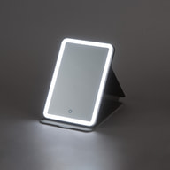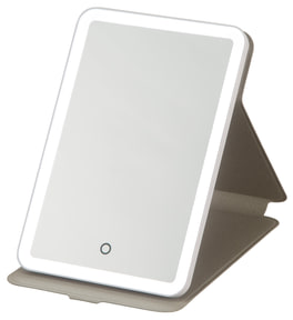 外出・旅行中のメイクに適したLED内蔵折りたたみミラー。カバー付きのタブレット風デザイン