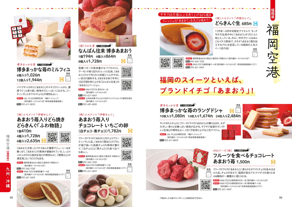 空港ならではの逸品から定番商品まで、国内の主な41空港の個性豊かなスイーツやお菓子をオールカラーで約400品紹介。個数や価格のほか販売店舗は空港のどの場所に位置しているかが分かるようになっており、喜ばれるお土産のカンペがほしい人にもお勧めの一冊という。