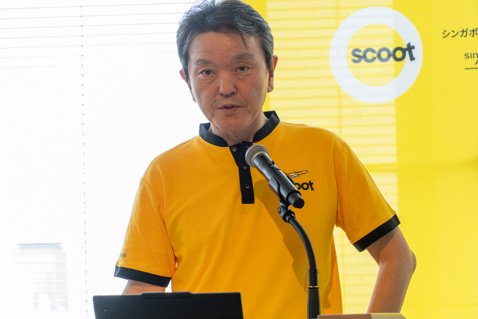 スクートは2月27日、都内で会見を開き、グローバル戦略や日本市場について説明した。同社は、週明けの3月2日に羽田~シンガポール線の就航を控えている。登壇者はスクート 最高商務責任者(CCO)のカルヴィン・チャン氏と日本支社長の安武秀敏氏。