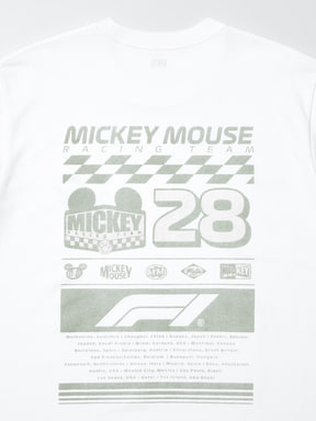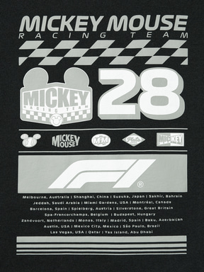デザインは、ディズニーの遊び心とエネルギッシュなF1のイメージを融合。レーストラックをイメージしたユニクロ限定のミッキーマウスのモチーフや、世界のレース開催都市名をはじめ、タイヤの走行痕ほか、F1ファンも楽しめるディテールをTシャツデザインに落とし込んだ。