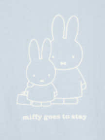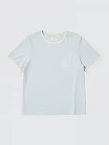 春の訪れを感じるやさしいパステルカラーをベースに、花柄ドレスを着たミッフィーが仲間たちと楽しそうに遊ぶ姿などを描いたウィメンズTシャツのシリーズ。既存の5種類に加え、今回新たに首まわりと袖口に差し色が入ったリンガーシャツ風の2種類(ライトブルー、ライトグレー)をラインアップしている。