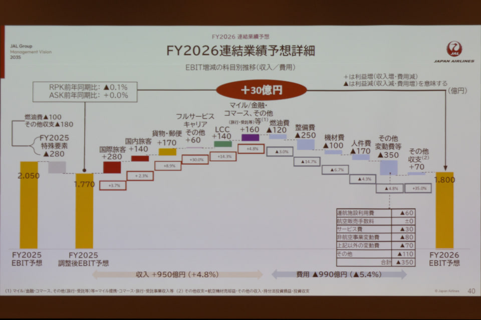 JAL、国内線で2027年4月から燃油サーチャージの導入を計画。中期経営計画は5か年から10か年へ
