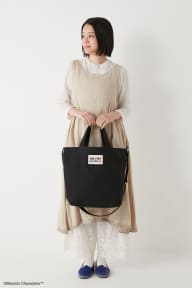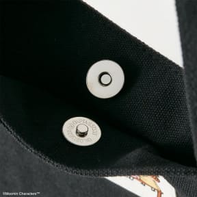 シックな黒地に「ムーミン」のリトルミイときょうだいたちのレザー調タグをあしらった、シンプルで使いやすい大人カジュアルな2WAYショルダーバッグ。シーンに合わせて手持ちと肩掛け・斜め掛けを使い分けできる。