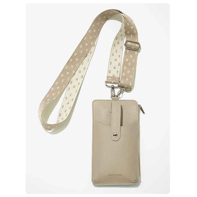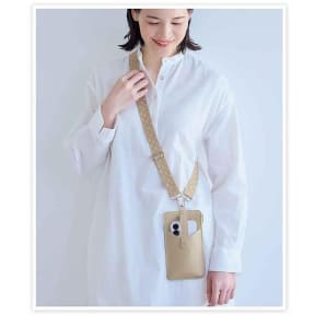 スマホショルダーとして使えるだけでなく、ポシェットにはファスナーポケットも備わり、小銭やカード、レシートなども一緒に携帯できる造り。