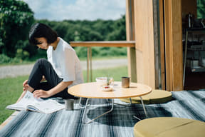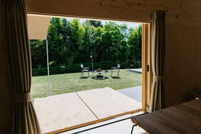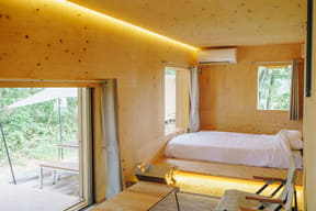 リニューアルでは、一部の客室テントをスノーピークによるモバイルハウス「住箱」に変更する。各室には冷暖房や電源設備を備え、外部にせり出すプライベートデッキを搭載。家具類にもスノーピーク製品を採用し、自身でコーヒーを淹れるセットも用意する。