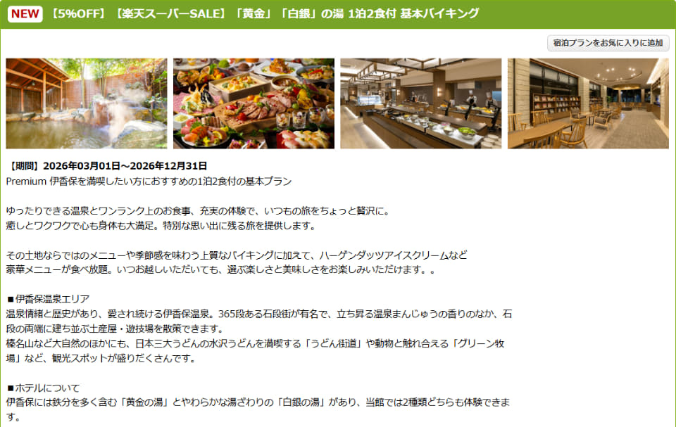 大江戸温泉物語Premium 伊香保、1泊2食バイキングが最大23%オフに。上州グルメと石段街の名湯