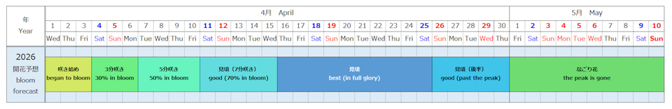 見頃のピークは1週間~10日ほど。ネモフィラ開花期は多くの来園者が見込まれるため、土日・GW期間・昼前後の時間帯を避けた分散来園への協力を求めている。