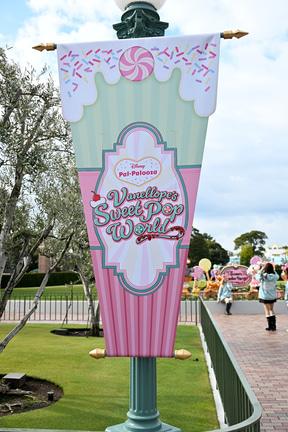東京ディズニーランドは、ディズニー・パルパルーザ第6弾「ヴァネロペのスウィーツ・ポップ・ワールド」のデコレーションを3月9日より展開している(イベントは4月9日~6月30日)。
