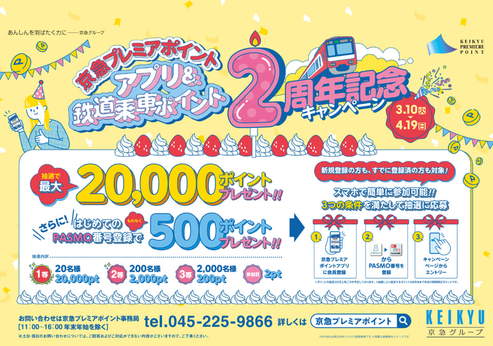 京浜急行電鉄は、「京急プレミアポイントアプリ&鉄道乗車ポイント2周年記念キャンペーン」を3月10日~4月19日に実施する。