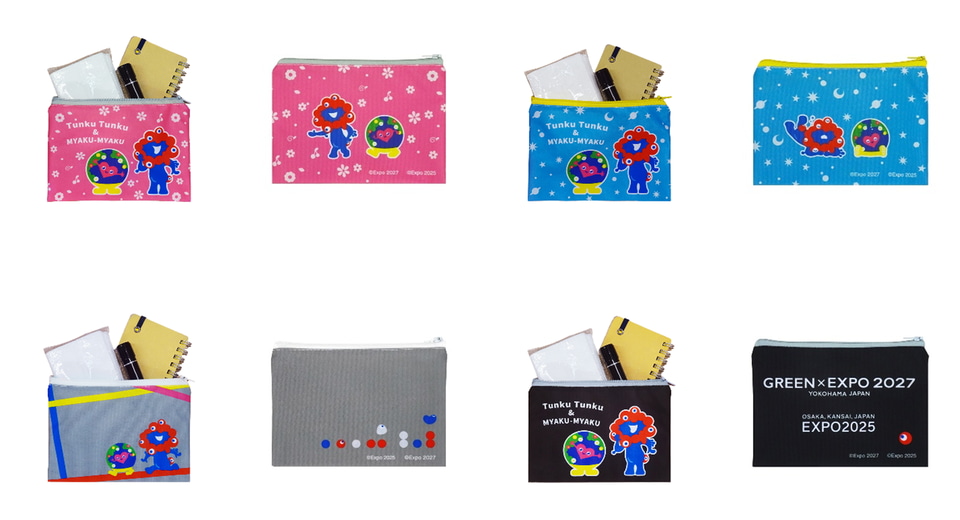 ・EX27 TK【ミャクミャク】ジッパーポーチ ピンク/ブルー/グレー/黒(各880円)