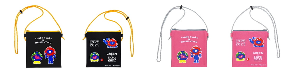・EX27 TK【ミャクミャク】ショルダーポーチ 黒/ピンク(各1210円)
