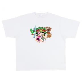 43周年ロゴが入ったミッキーマウスとミニーマウスの「ぬいぐるみ」(各5500円)や、2つのぬいぐるみがぴったり収まるサイズの「ショルダーバッグ」(5500円)、トゥーンタウン内を描いた「Tシャツ」(大人4300円、子供3600円)などをラインアップ。