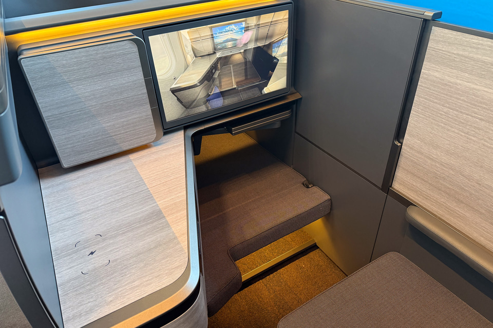 大型機777の個室シートと同様のものを中型機787へ導入にするにあたり、ドアと壁の薄型化など居住性を犠牲にしないように空間の最大化に挑み、一方でクッション厚をこれまでより増すことで座り心地・寝心地の向上を図っているという。