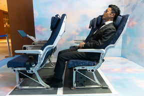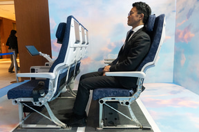 前後2席が向かい合わせになる(一方は機首に背中を向けて座る)という特徴はそのままに、シートピッチは103インチ(約2.6m)、フルフラット時の最大長は76.5インチ(約194cm)。横幅は41.5インチ(約105cm)、腰元は27.0インチ(約69cm)で、大柄な男性でも余裕を持って横になれるスペックを実現した。