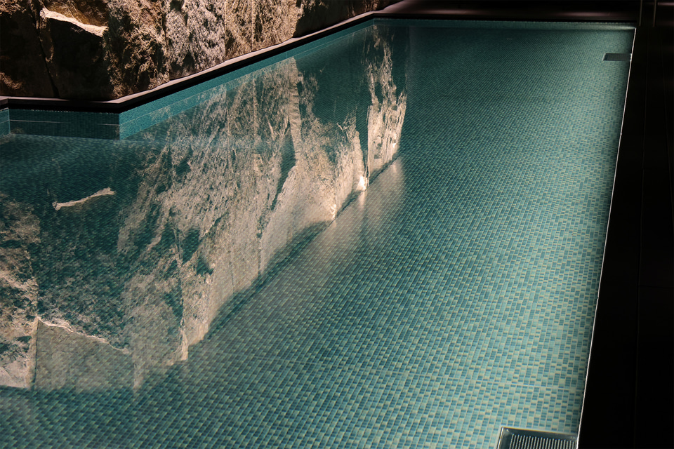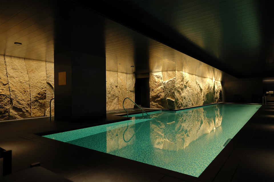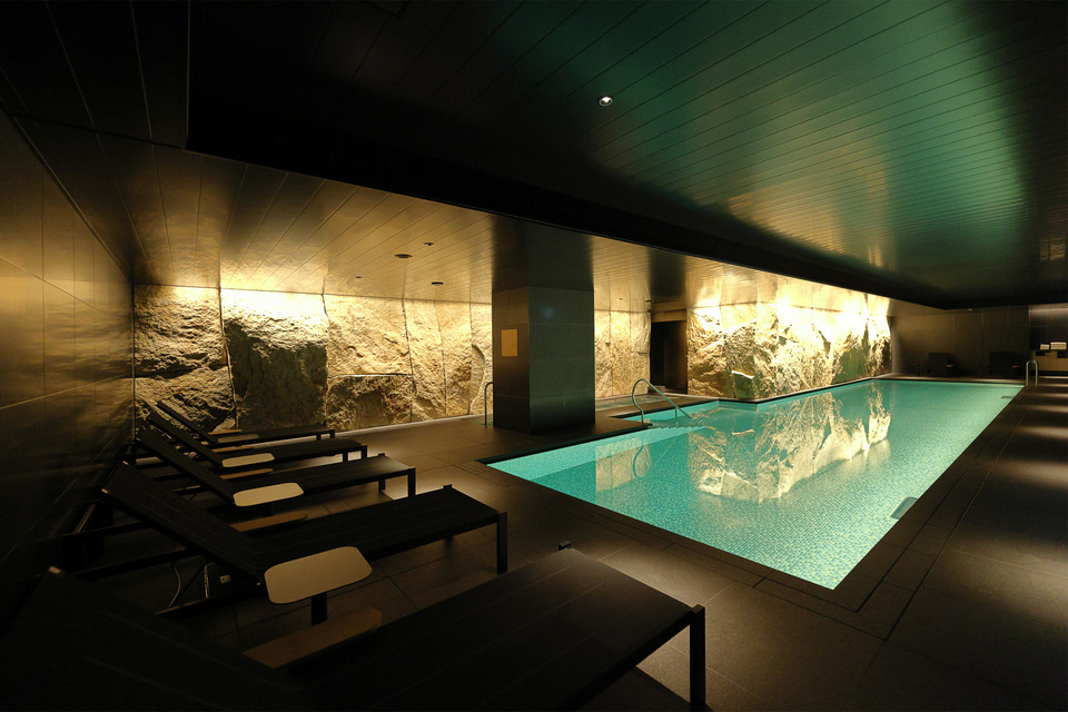 帝国ホテル 京都には、現代のラグジュアリーホテルらしくプール、フィットネスジム、サウナ・温浴、スパトリートメントといったウェルネスの設備も充実している。いずれも地下1階にあり、利用は宿泊者限定。取材時はこのうちプールを見学できた。圧巻の光景は一見の価値あり。また喧騒を離れてリラックスできる空間なので、宿泊の際にはぜひプールの利用(無料)をお勧めしたい。