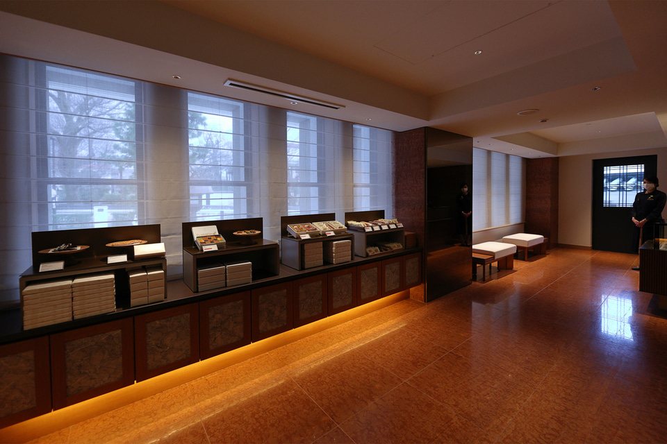 1階、エントランス脇には「ザ ペストリーショップ」があり、帝国ホテル人気のケーキや焼き菓子などに加え、帝国ホテル 京都オリジナルの商品を用意している。これらの商品は季節に合わせて変化していくという。営業時間は11時~19時で、宿泊者以外でも利用可能。
