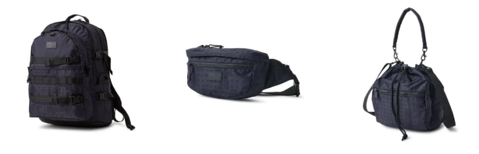 また、ペイズリーやナイトカモの織柄、ペイント調のスプラッシュ柄など、デザイン性の高い生地を採用したアイテムも多数展開しており、バッグ単体としてはもちろん、ウェアとのコーディネートも楽しめるラインアップとなっている。