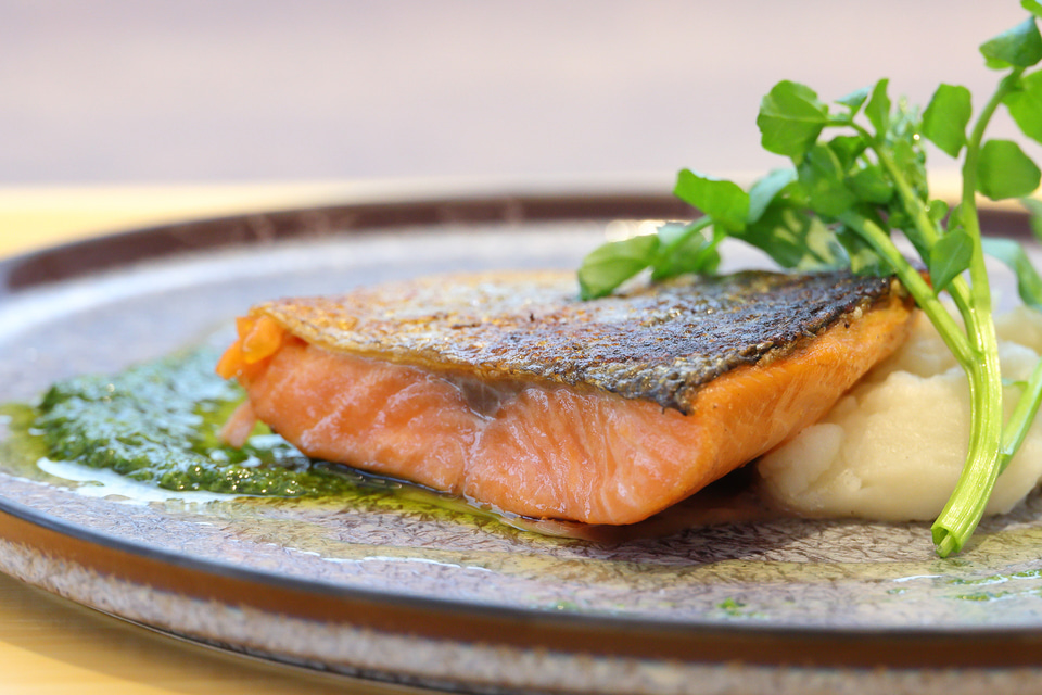今回試食してみたのは栃木県の特産魚ヤシオマスのソテー。脂がしっかりとありながら後味のいいヤシオマスをレアで焼き上げたもので県外の店ではなかなかお目にかかれないメニューだ。ご飯もクレソンソースも栃木県産のものを使用しているとのことだ。