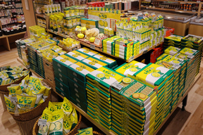 栃木市・岩下食品の「岩下の新生姜」、通称「レモン牛乳」として知れた栃木乳業の「関東・栃木レモン」は商品そのものから関連グッズまで膨大な商品群が目を引く。
