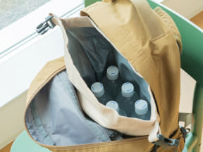 いつものリュックやカバンに入れて使える保冷インナーバッグ。500mLのペットボトルを最大5本収納できる大きさで、40℃で8時間氷をキープできる保冷力。付属のショルダーストラップを使えばサコッシュ感覚で持ち運べる。