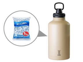 家族の飲み物を1つにまとめられる1.9Lの大容量保冷ジャグ。真空断熱構造により、炎天下でも飲み物を冷たくキープする。市販の氷なら1kgがそのまま入る。飲み物をたくさん持って行きたいクラブ活動やレジャー、釣りなどのマイ水筒にも。