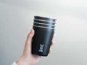 4個セットのスタッキングカップで、ピタッと重なりコンパクトに持ち運べる。ニンジンの数で自分のコップがどれか分かるデザインで、かわいい収納袋付き。大容量保冷ジャグ「ファミリー・ウサーモ」とセットで使うのもお勧めという。