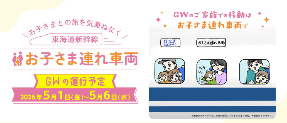 JR東海は、GWに東海道新幹線で「お子さま連れ車両」を設定する。より多くの人が利用できるよう、今年は前年より24本増やし、合計70本を運行する。